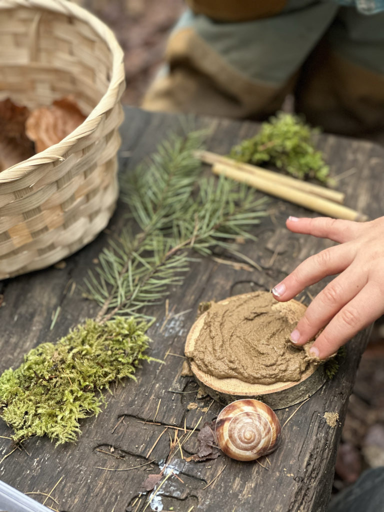 Naturmaterialien sprechen alle Sinne an: Die raue Rinde eines Astes fühlt sich anders an als die glatte Oberfläche eines Schneckenhauses. Der erdige Duft des Lehms, das Rascheln trockener Blätter. All diese sinnlichen Erfahrungen bereichern den kreativen Prozess und schaffen eine tiefe Verbindung zur natürlichen Umgebung. Zudem lernen die Kinder, die Natur wertzuschätzen und die Schönheit im scheinbar Gewöhnlichen zu entdecken.